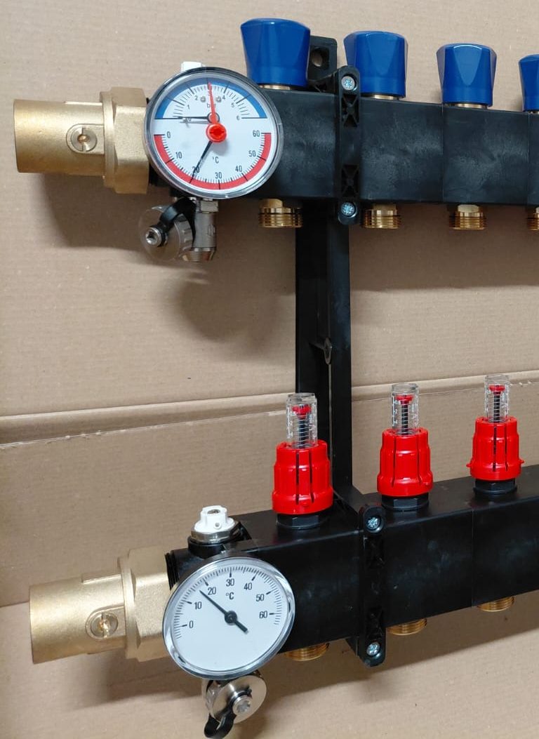 Verdelers met of zonder pomp. Verkrijgbaar vanaf 2 groepen in diverse materiaalspecificaties: