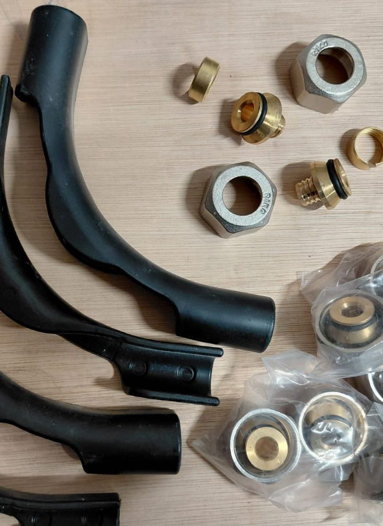 Om de buis aan de verdeler te monteren zijn bochten en koppelingen nodig. Deze zijn per set van 2 stuks te bestellen.