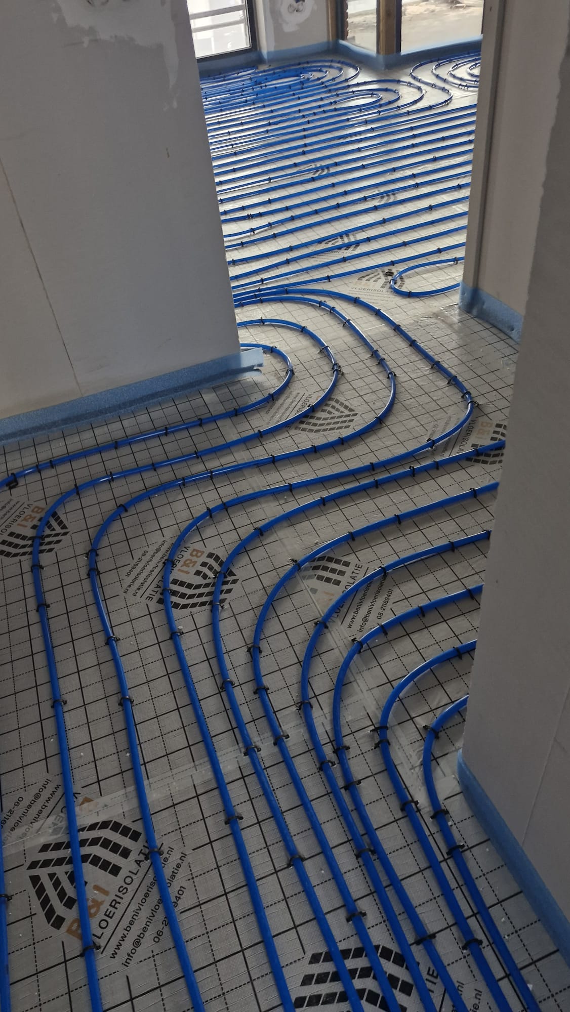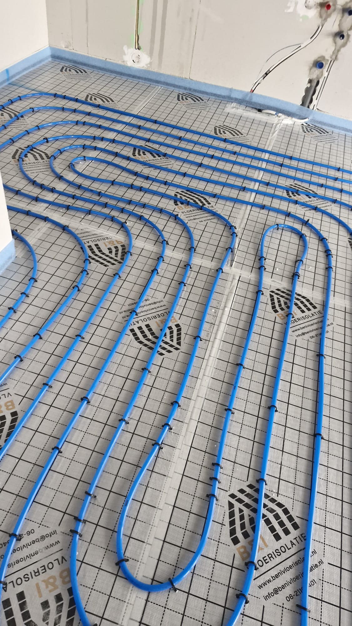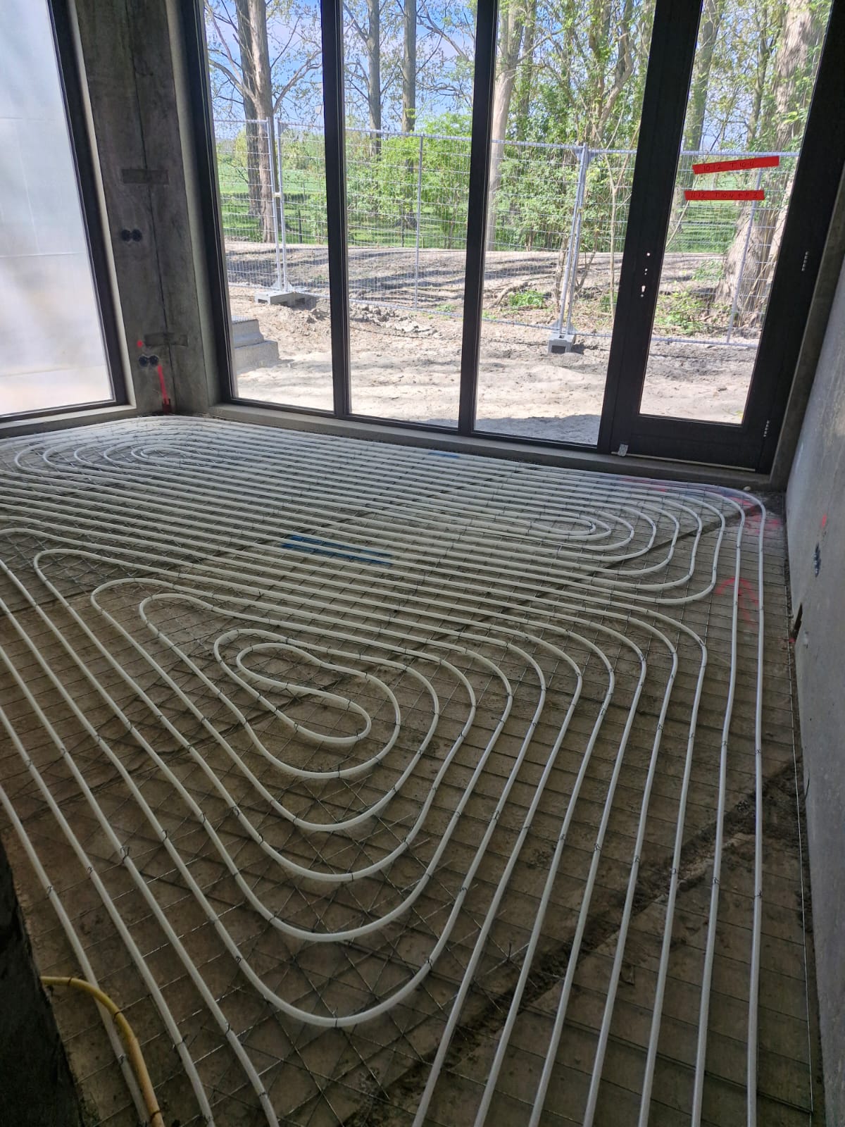 Hierbij hebben we de vloerverwarming gemonteerd middels vlechtmethode op leg afstand op H.O.H. 100 & 150.