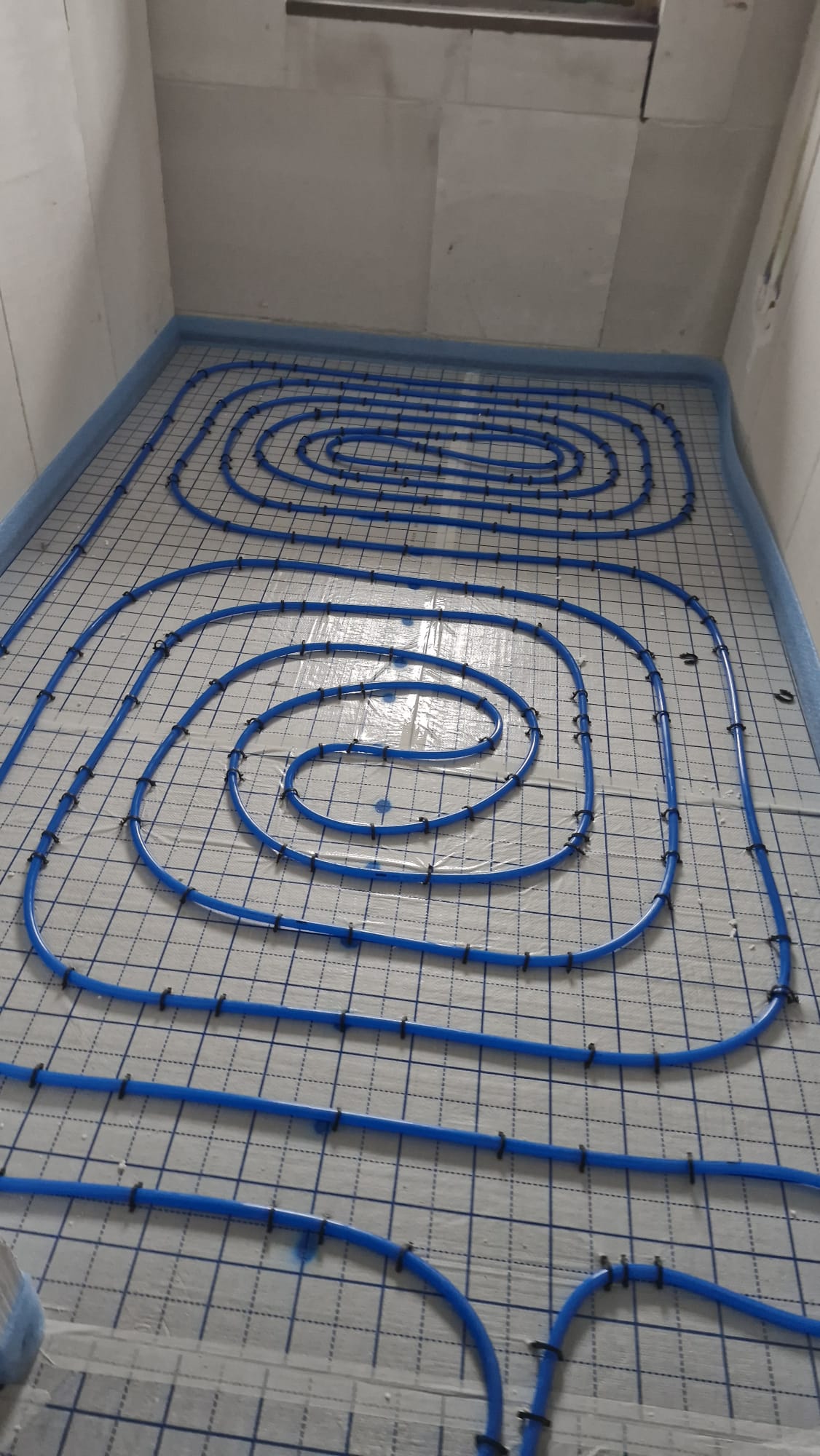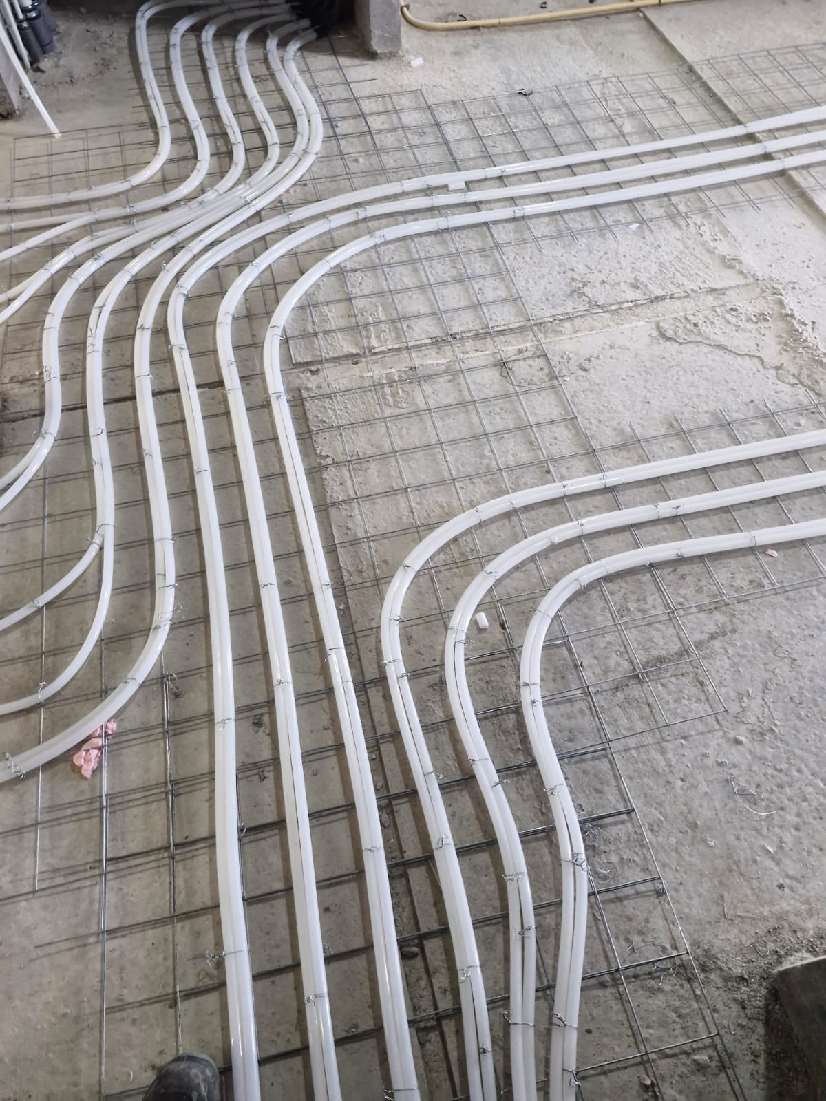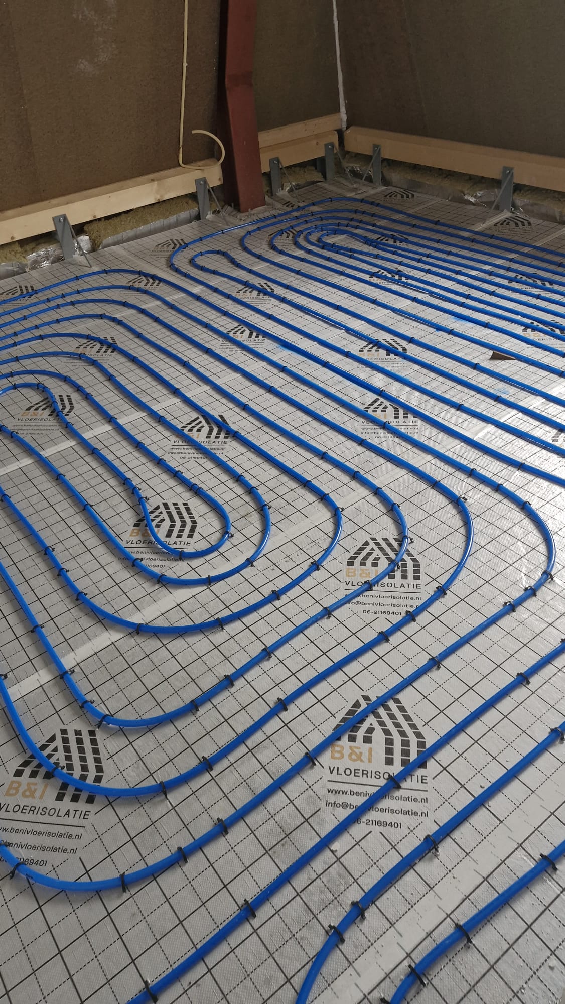 Hierbij hebben we de vloerverwarming gemonteerd middels vlechtmethode op leg afstand op H.O.H. 100 & 150.